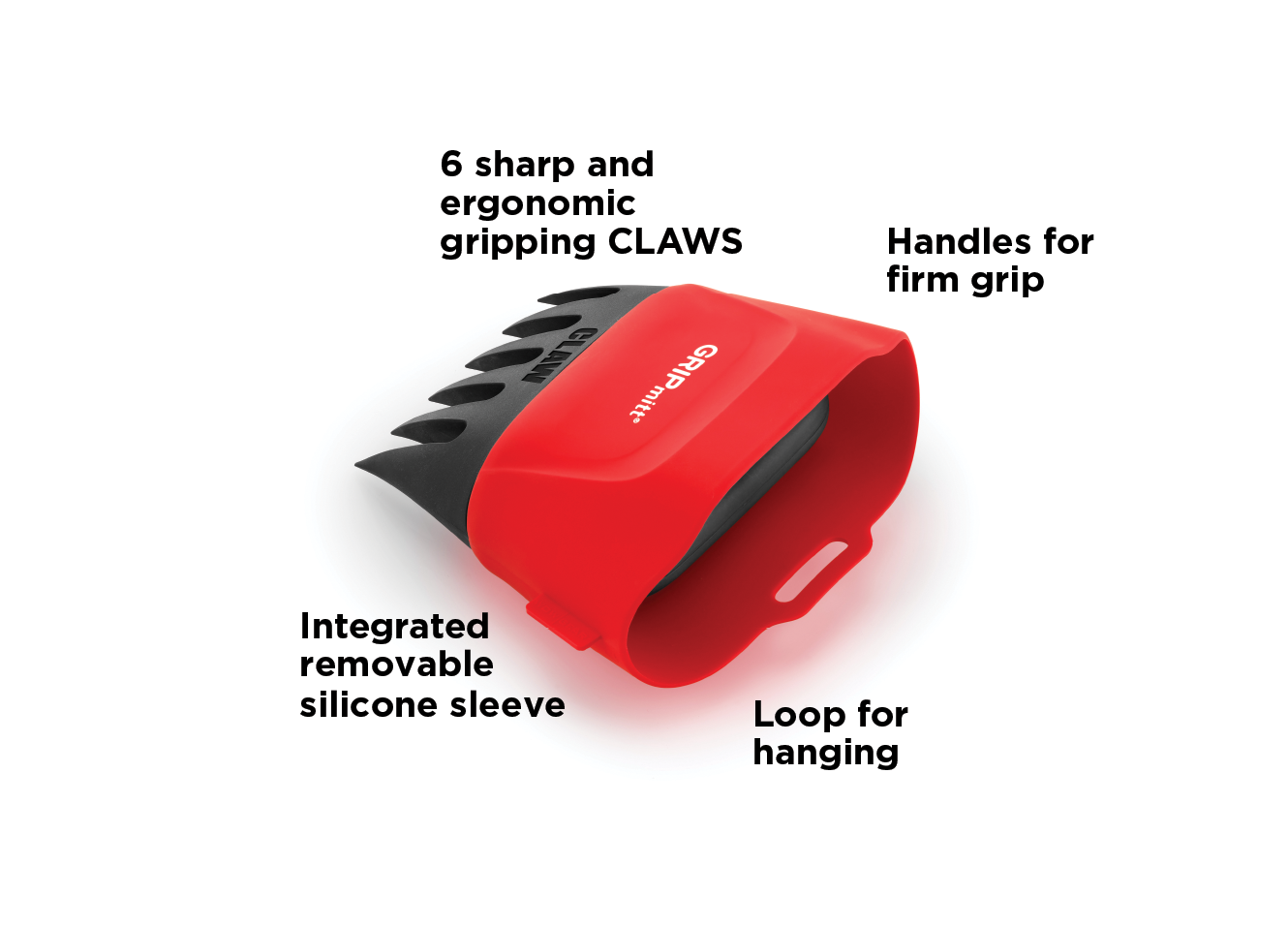 GRIPmitt® CLAW is an innovative and first-of-its-kind kitchen and BBQ tool that provides a superior clean and safe solution to handle cooked and raw meats and other food products. GRIPmitt® CLAW was designed for shredding roasted, slow cooked and smoked meat, moving food products from roasting pan, BBQ, tray or cutting board, gripping meats while slicing and carving and tossing and serving salads, vegetables and marinated meats.